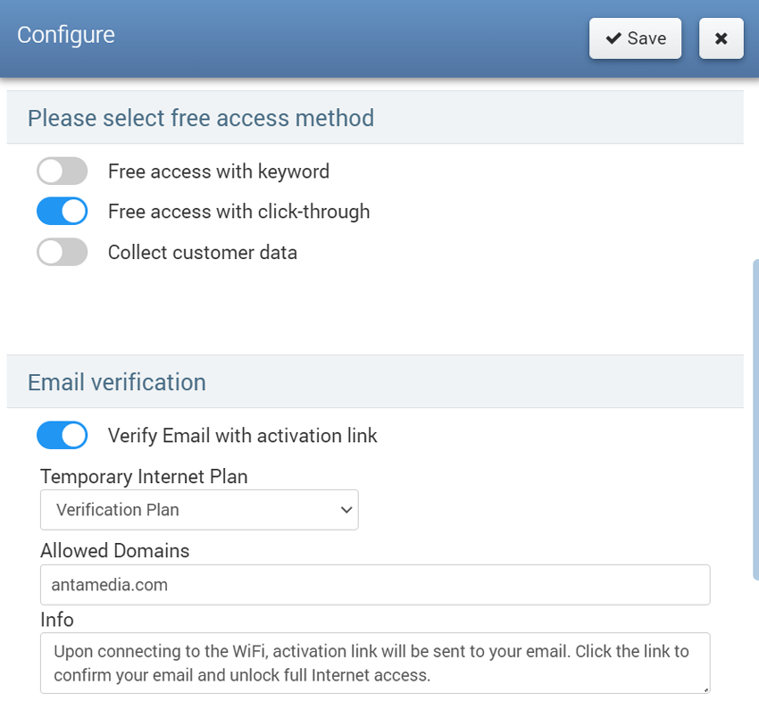 Optionally, you can specify Allowed domains (e.g., your company email) and include an Info message.