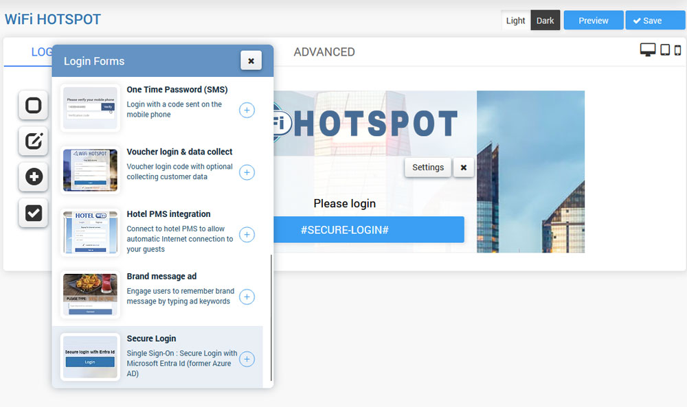 Go to the Splash page / Login forms and choose Secure Login.