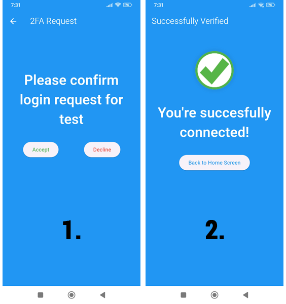 Push notifications are alerts sent to a user’s mobile device when they attempt to log in to a system secured by two-factor authentication. Instead of manually entering a time-based one-time password (TOTP), users can approve or deny the login attempt directly from the notification.